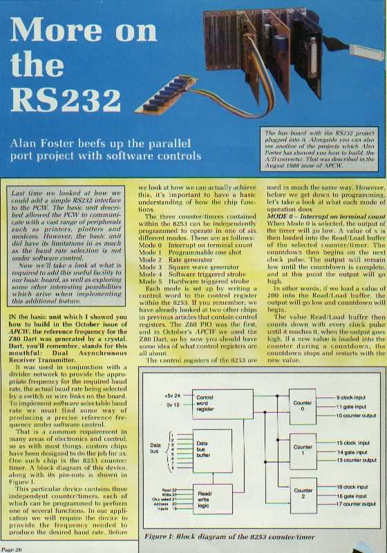 - Page 26 (91,840 bytes), Amstrad PCW, November 1988. Bus board RS232 port.